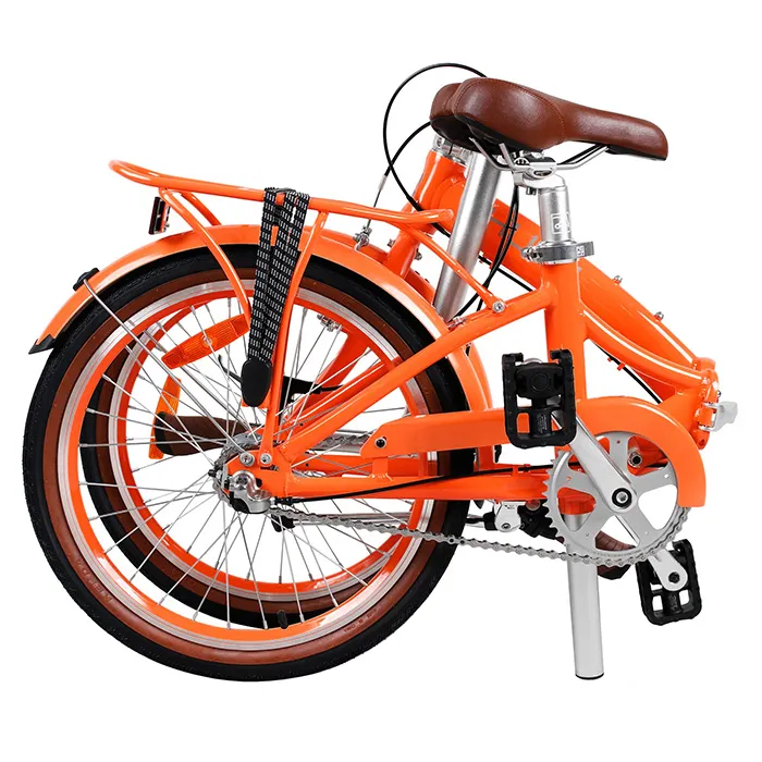 Дисковый тормоз на заднем колесе, жесткая вилка, двойной алюминиевый обод и сигнальная подсветка. Рама с подножкой улучшает устойчивость велосипеда в сложенном виде. Одна скоростная передача обеспечивает равномерный шаг велосипеда.